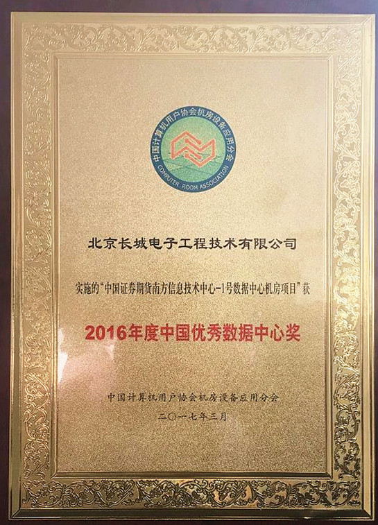 北京長城電子工程技術(shù)有限公司承建的“中國證券期貨南方信息技術(shù)中心-1號(hào)數(shù)據(jù)中心機(jī)房”作為本次活動(dòng)的應(yīng)用推廣樣板,并榮獲“2016年度中國優(yōu)秀數(shù)據(jù)中心”。