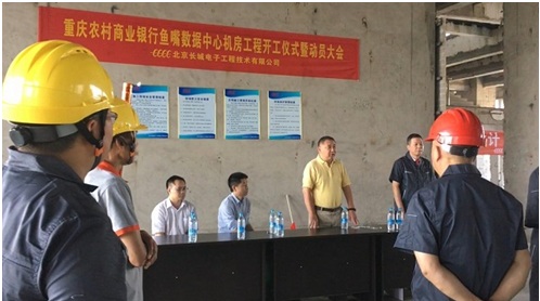 由北京長城電子工程技術有限公司中標的重慶農村商業銀行魚嘴數據中心機房總包工程項目于6月7日正式開工,公司副董事長姜月林,重慶分公司總經理陳永剛,甲方領導冉龍兵和周洪先生出席了開工儀式。